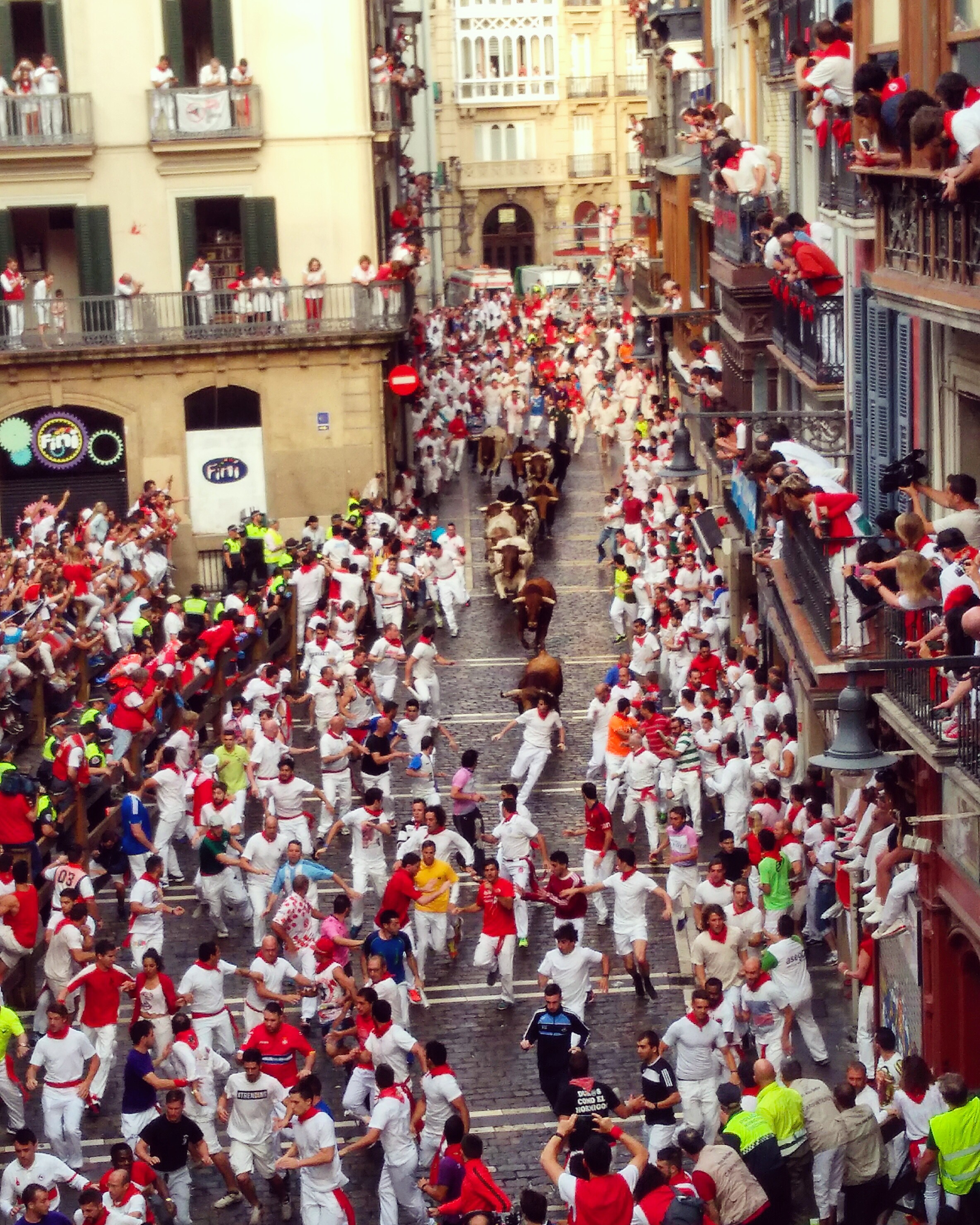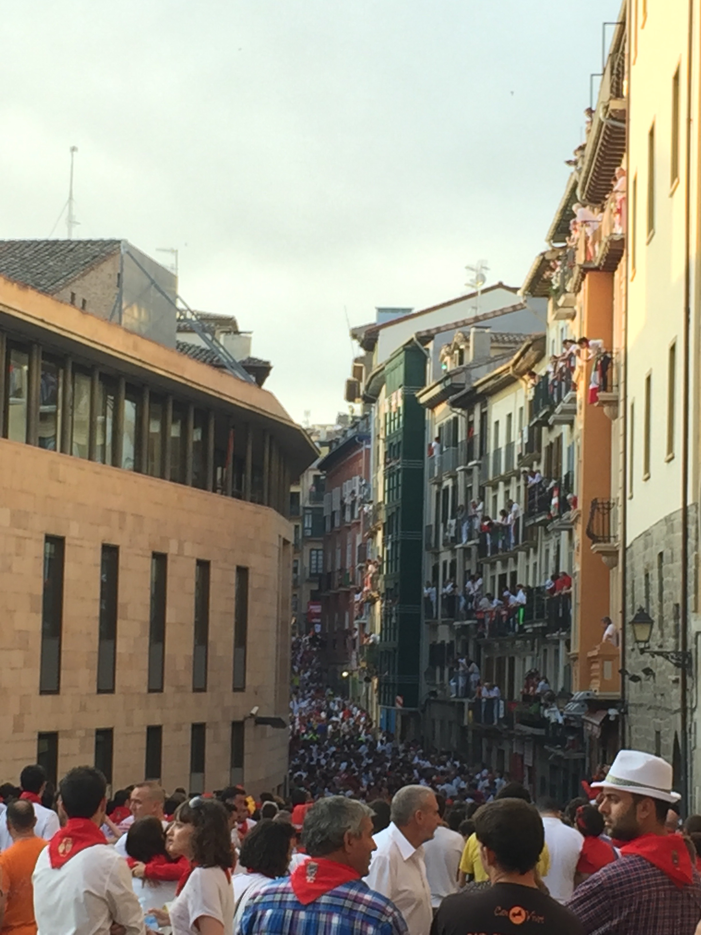 - Run… if you dare. The run is really quick, about 4-5 minutes from where the bulls are held into the arena where the matadors will finish them off that day. With clean cobblestone roads and hairpin turns, the bulls tend to lose control at various points so if you do run, avoid the far walls of these corners. They’re pretty strict about people wearing proper footwear and not showing up drunk on zero sleep after partying all night.